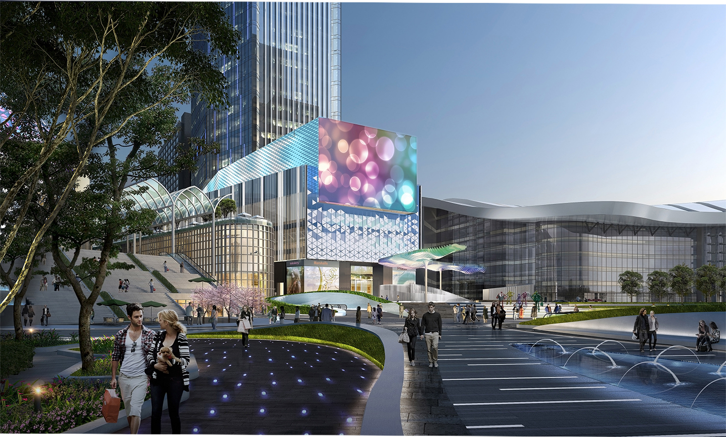 設(shè)置下層廣場(chǎng)與地鐵站無(wú)縫對(duì)接;設(shè)置商業(yè)連廊,放大主要出入口,在主要位置放置 LED 電子屏裝點(diǎn)入口廣場(chǎng);設(shè)計(jì)立體交通以匯聚光谷廣場(chǎng)地上地下以及一期步行街人流;屋頂造型獨(dú)特。設(shè)計(jì)師通過(guò)一系列方式體現(xiàn)“光”的概念,力圖讓每一個(gè)經(jīng)過(guò)光谷廣場(chǎng)的人都能感受其特點(diǎn),從而打造一道全新的城市亮麗風(fēng)景線。
