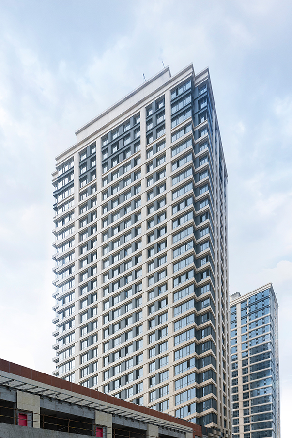 辦公區(qū)沿基地西側布置,靠近基地西側的大型景觀公園,使整個建筑群最大程度的享受到城市中央景觀,辦公區(qū)相對獨立,同時底層架空綠化與商業(yè)街區(qū)流線分開,提升了辦公的品質。