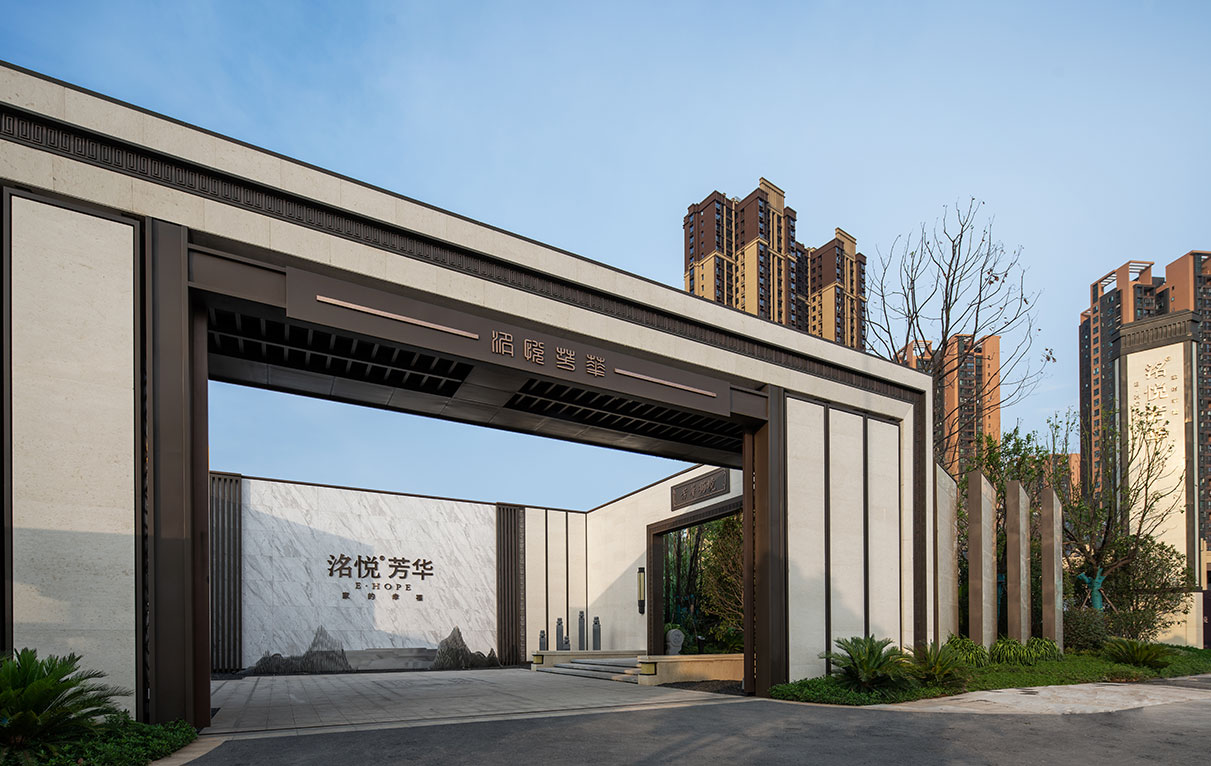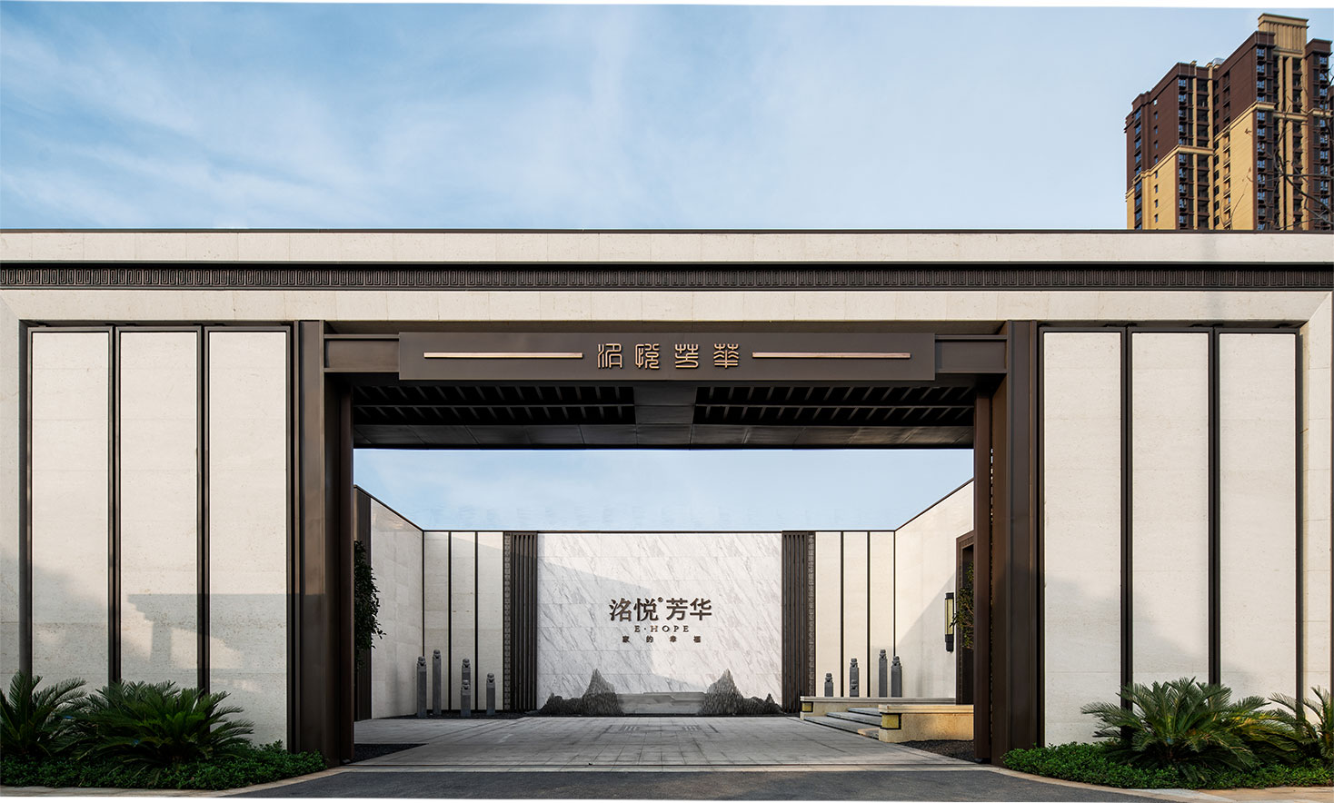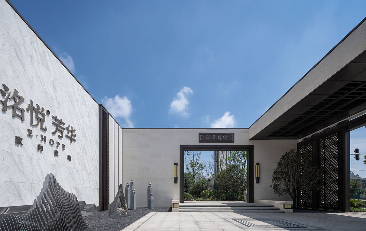 武漢洺悅芳華示范區(qū)位于湖北省武漢市經(jīng)濟(jì)技術(shù)開(kāi)發(fā)區(qū),項(xiàng)目所屬區(qū)域在三環(huán)線以內(nèi)為主城區(qū)。在項(xiàng)目場(chǎng)地中,商業(yè)建筑的南側(cè)與項(xiàng)目場(chǎng)地西南角距離較近,對(duì)示范區(qū)入口區(qū)域產(chǎn)生了干擾。因此,對(duì)示范區(qū)出入口方式的選擇是本項(xiàng)目的重中之重。另外,在現(xiàn)有場(chǎng)景中如何將“五進(jìn)”空間融入到示范區(qū)內(nèi)用景觀勾畫(huà)出空間的秩序,同時(shí)營(yíng)造出新中式景觀的神韻感,這也是項(xiàng)目的一大挑戰(zhàn)。