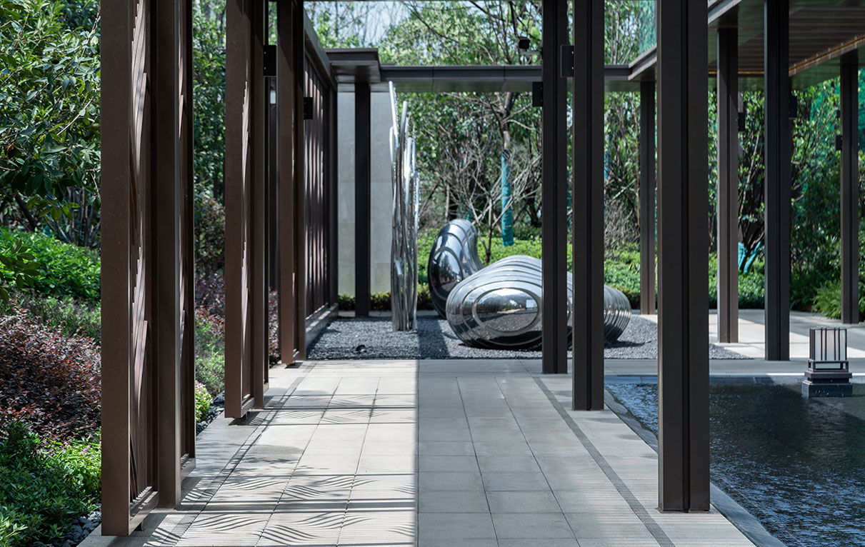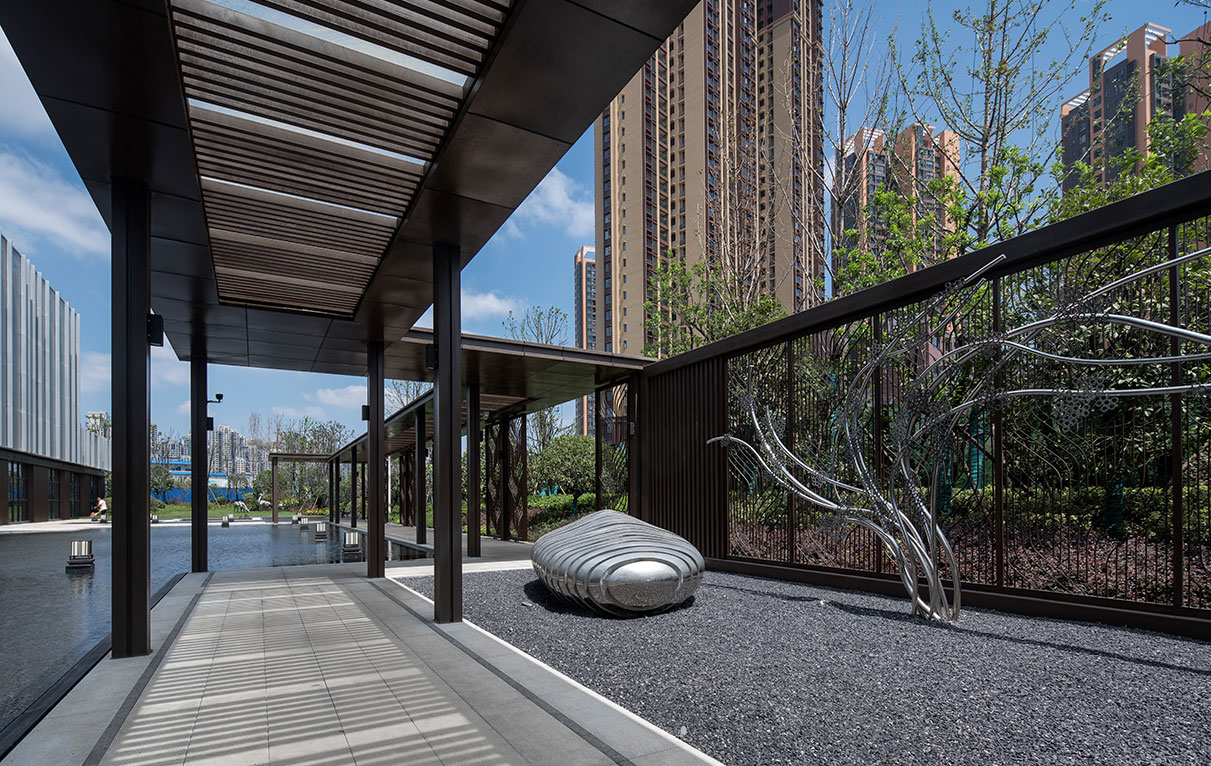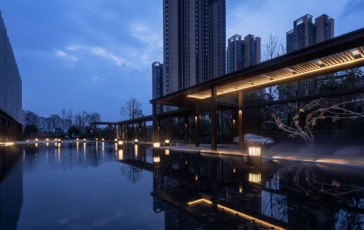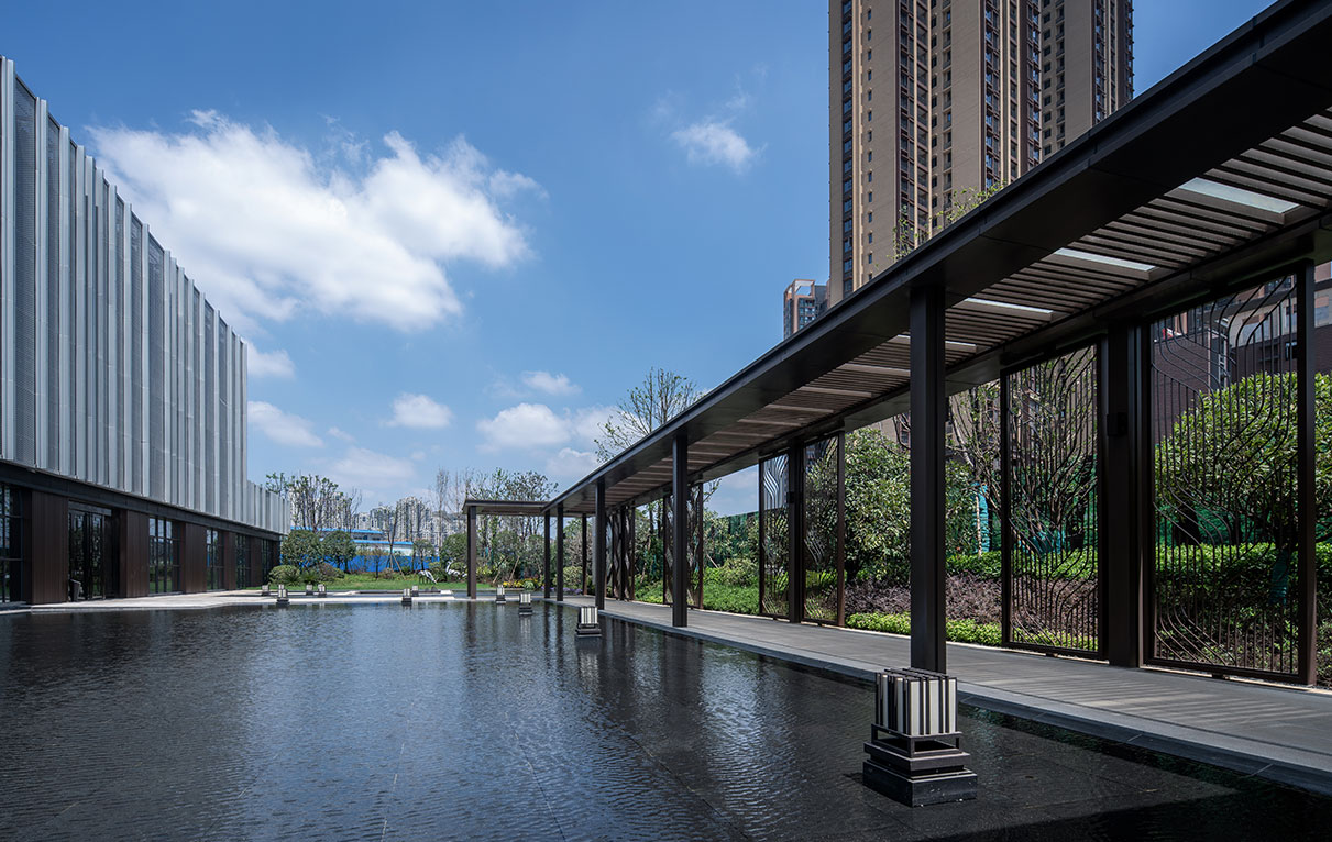 武漢洺悅芳華示范區(qū)位于湖北省武漢市經(jīng)濟(jì)技術(shù)開(kāi)發(fā)區(qū),項(xiàng)目所屬區(qū)域在三環(huán)線以內(nèi)為主城區(qū)。在項(xiàng)目場(chǎng)地中,商業(yè)建筑的南側(cè)與項(xiàng)目場(chǎng)地西南角距離較近,對(duì)示范區(qū)入口區(qū)域產(chǎn)生了干擾。因此,對(duì)示范區(qū)出入口方式的選擇是本項(xiàng)目的重中之重。另外,在現(xiàn)有場(chǎng)景中如何將“五進(jìn)”空間融入到示范區(qū)內(nèi)用景觀勾畫(huà)出空間的秩序,同時(shí)營(yíng)造出新中式景觀的神韻感,這也是項(xiàng)目的一大挑戰(zhàn)。