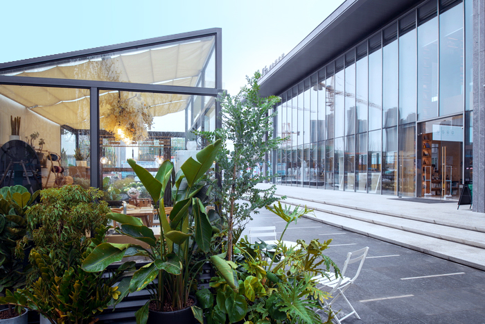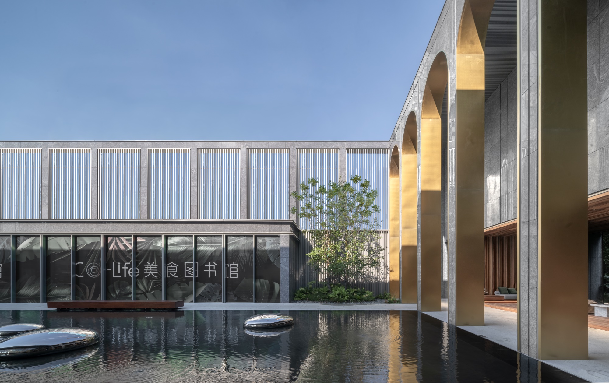 在Co-Life美食圖書館的主題下,用適度的表達(dá)讓建筑、景觀、室內(nèi)相互疊加,融合成為渾然一體的多重場(chǎng)景呈現(xiàn)。