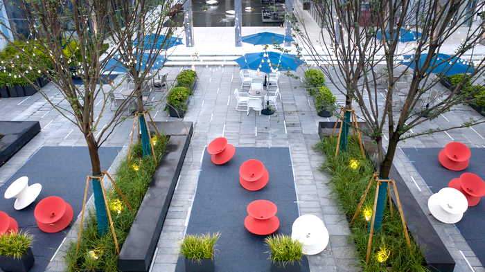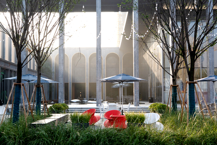在建筑語匯已經(jīng)極其豐富的這個(gè)內(nèi)庭空間,我們非常審慎地選擇景觀搭配的方式,力求和融共生,在不經(jīng)意間實(shí)現(xiàn)總體環(huán)境品質(zhì)和氣質(zhì)的提升。