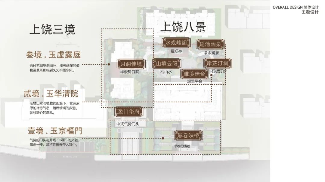 項(xiàng)目分為2個(gè)地塊,地塊一占地60畝,地塊二占地43畝。項(xiàng)目示范區(qū)位置靠近城市主干道,通達(dá)性、昭示性良好。在家族昌盛的歷史中,在上饒江山背后的淵源里,賦予著博大精深的文化,護(hù)佑匠心的傳承,護(hù)佑根深葉茂的家族門(mén)第,稱之為明樾。項(xiàng)目傳承宋朝文化,賦予江山氣質(zhì),故案名為【江山明樾】。項(xiàng)目將宋朝美學(xué)與現(xiàn)代景觀相結(jié)合,打造一個(gè)更鮮明的東方時(shí)尚。