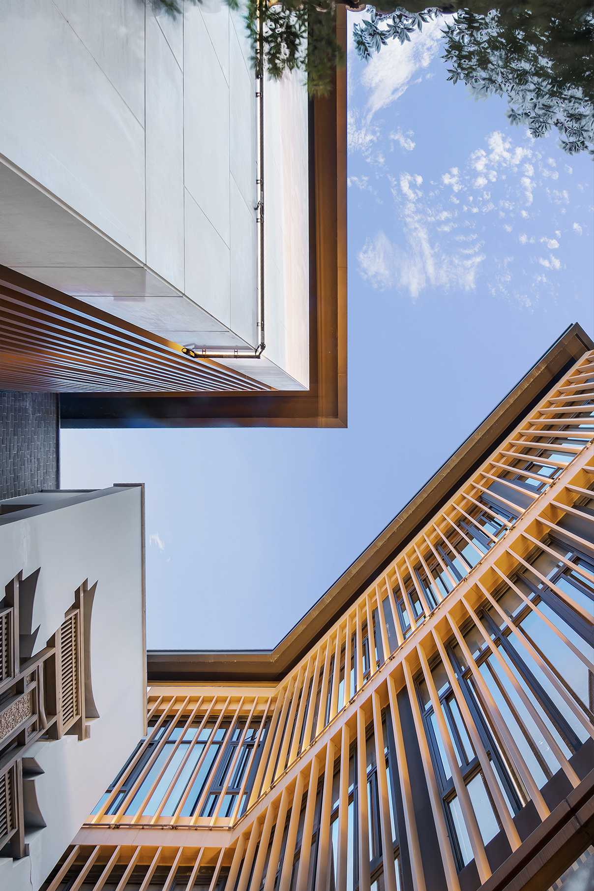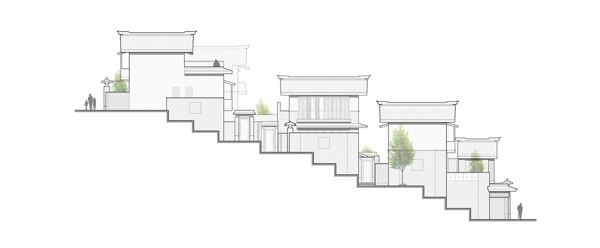 精品民宿區(qū)作為整個(gè)項(xiàng)目展示面,匯聚人文氣息,采用現(xiàn)代設(shè)計(jì)語言,強(qiáng)調(diào)整體、厚重、秩序感,營造宋文化書院”禮 仁 樂“的空間秩序??臻g形態(tài)順應(yīng)地形層層而上,精心組織各個(gè)名宿的動(dòng)線,讓山地建筑擁有便利的可達(dá)性。