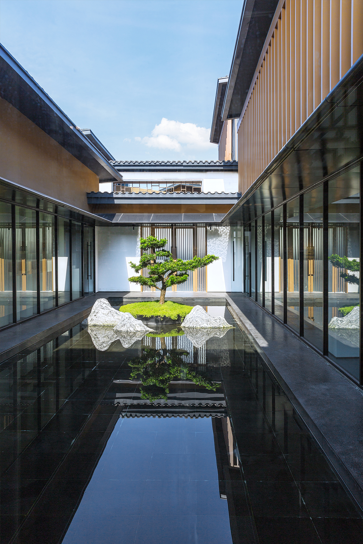 精品酒店區(qū)匯聚人文氣息,采用現(xiàn)代設(shè)計(jì)語言,強(qiáng)調(diào)整體、厚重、秩序感,營造宋文化書院”禮 仁 樂“的空間秩序。
