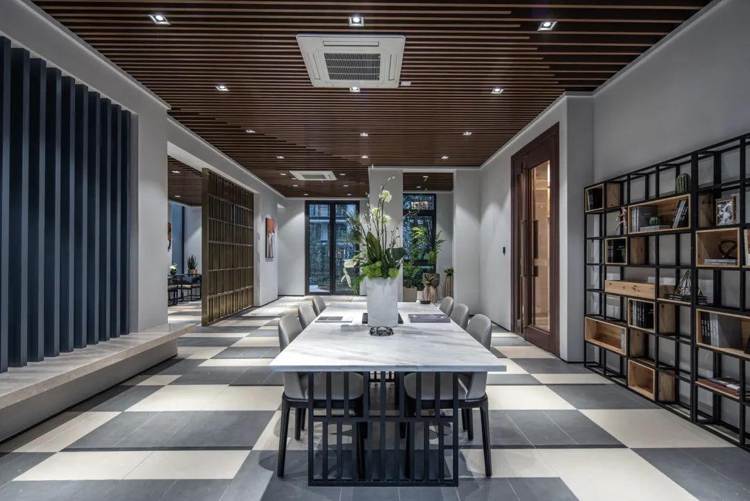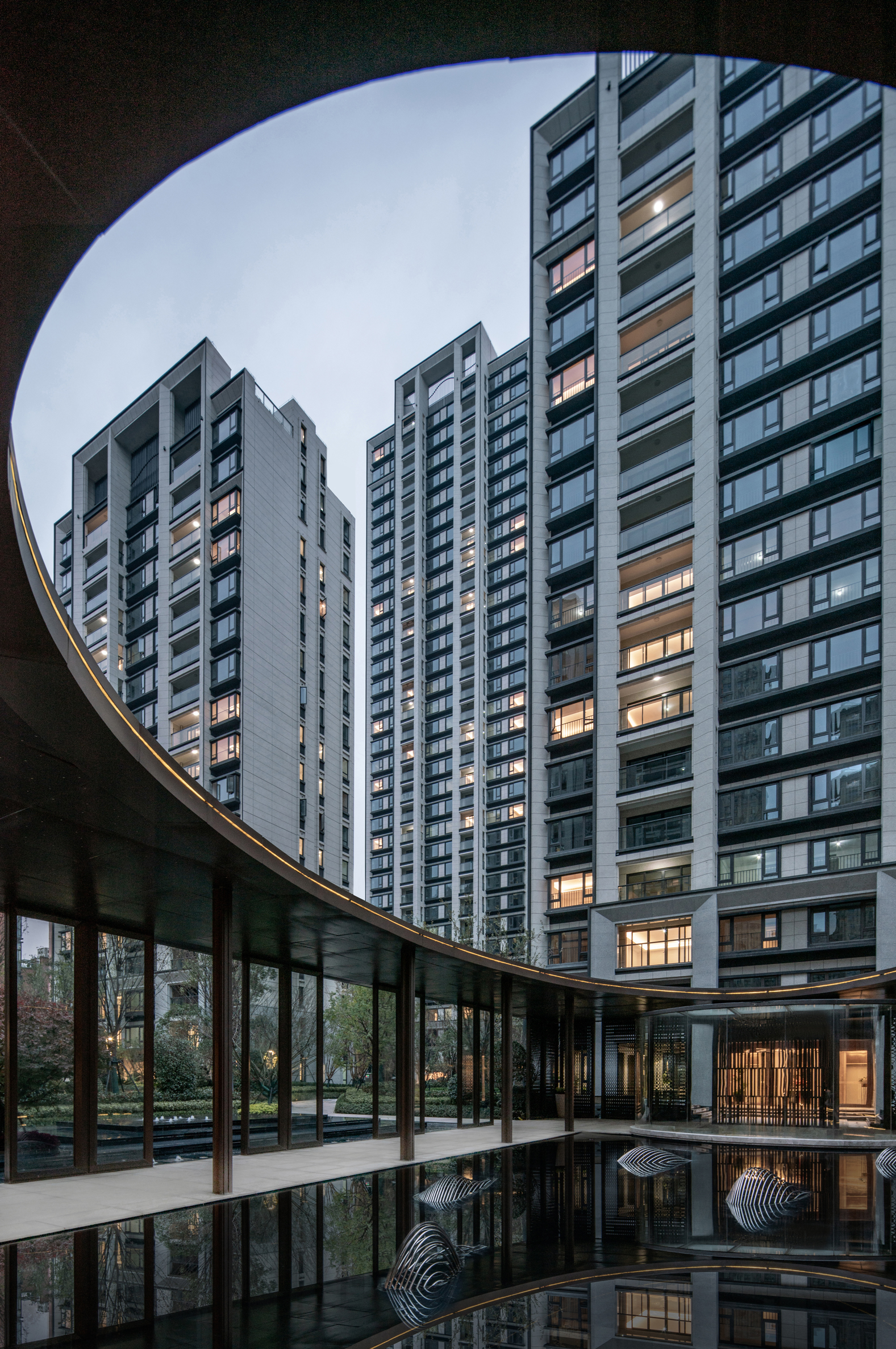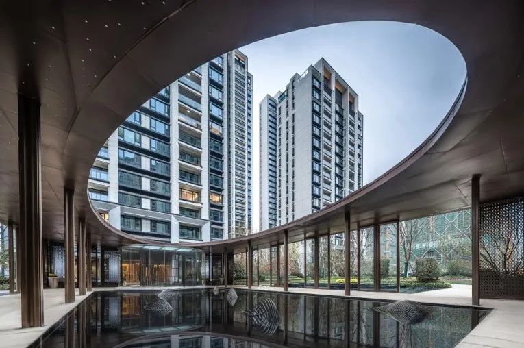 架空層設(shè)計(jì)-住宅區(qū)公共空間包括入戶(hù)門(mén)廳、公共配套等,較為常見(jiàn)的處理方式是以門(mén)廳作為室內(nèi)外空間的界限,并通過(guò)路徑和空間來(lái)營(yíng)造歸家儀式感。隨著對(duì)居住環(huán)境品質(zhì)的更高需求,底層架空的設(shè)計(jì)逐漸流行起來(lái)。架空后的底層平面自然形成半室外空間用于鄰里交往、景觀營(yíng)造、社區(qū)活動(dòng)等多樣化功能,一定程度上解放了用地范圍內(nèi)的土地資源,也革除了建筑內(nèi)外空間界限。但在實(shí)際項(xiàng)目操作過(guò)程中,常因底層架空的歸屬邊界不清晰,導(dǎo)致成為建筑、室內(nèi)、景觀三不管的盲區(qū)。因此在這個(gè)項(xiàng)目中,我們牽頭整合了室內(nèi)和景觀的設(shè)計(jì)思路,建筑保證空間的連續(xù)性,地面造景交由景觀延伸,吊頂設(shè)備由室內(nèi)統(tǒng)一設(shè)置,最后圖紙整合,實(shí)現(xiàn)一體化的高完成度空間。