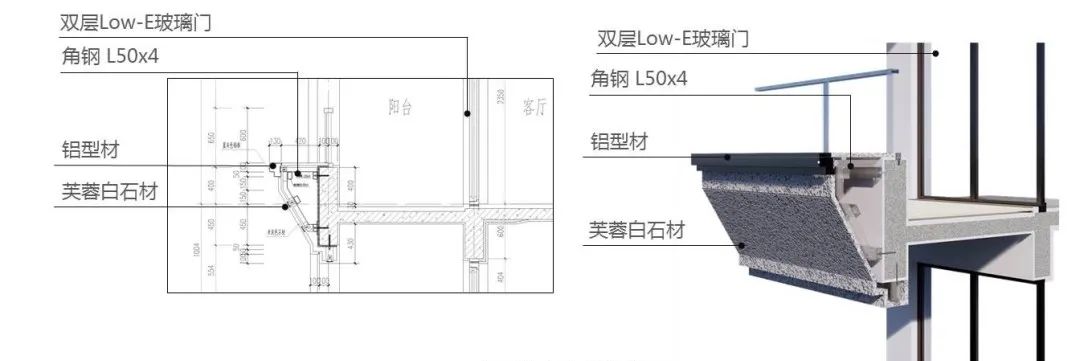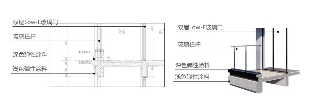 標(biāo)準(zhǔn)斷面設(shè)計(jì)中的窗檻墻加玻璃的節(jié)點(diǎn),陽(yáng)臺(tái)分戶(hù)玻璃的設(shè)計(jì)研究是提升整個(gè)立面觀感的有效投入,同時(shí)成本也在可控的范圍內(nèi),團(tuán)隊(duì)通過(guò)模型及試樣的推敲有效的控制了細(xì)節(jié)的觀感,并以此項(xiàng)目為基準(zhǔn)在后續(xù)的設(shè)計(jì)中不斷的迭代優(yōu)化。