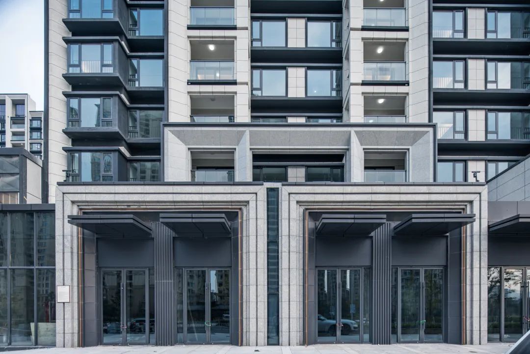 多種材質(zhì)的拼接和精細(xì)化的細(xì)節(jié)處理。采用開(kāi)放式幕墻體系,石材鋁板幕墻與超白玻相結(jié)合,突顯單元的輕盈現(xiàn)代感。