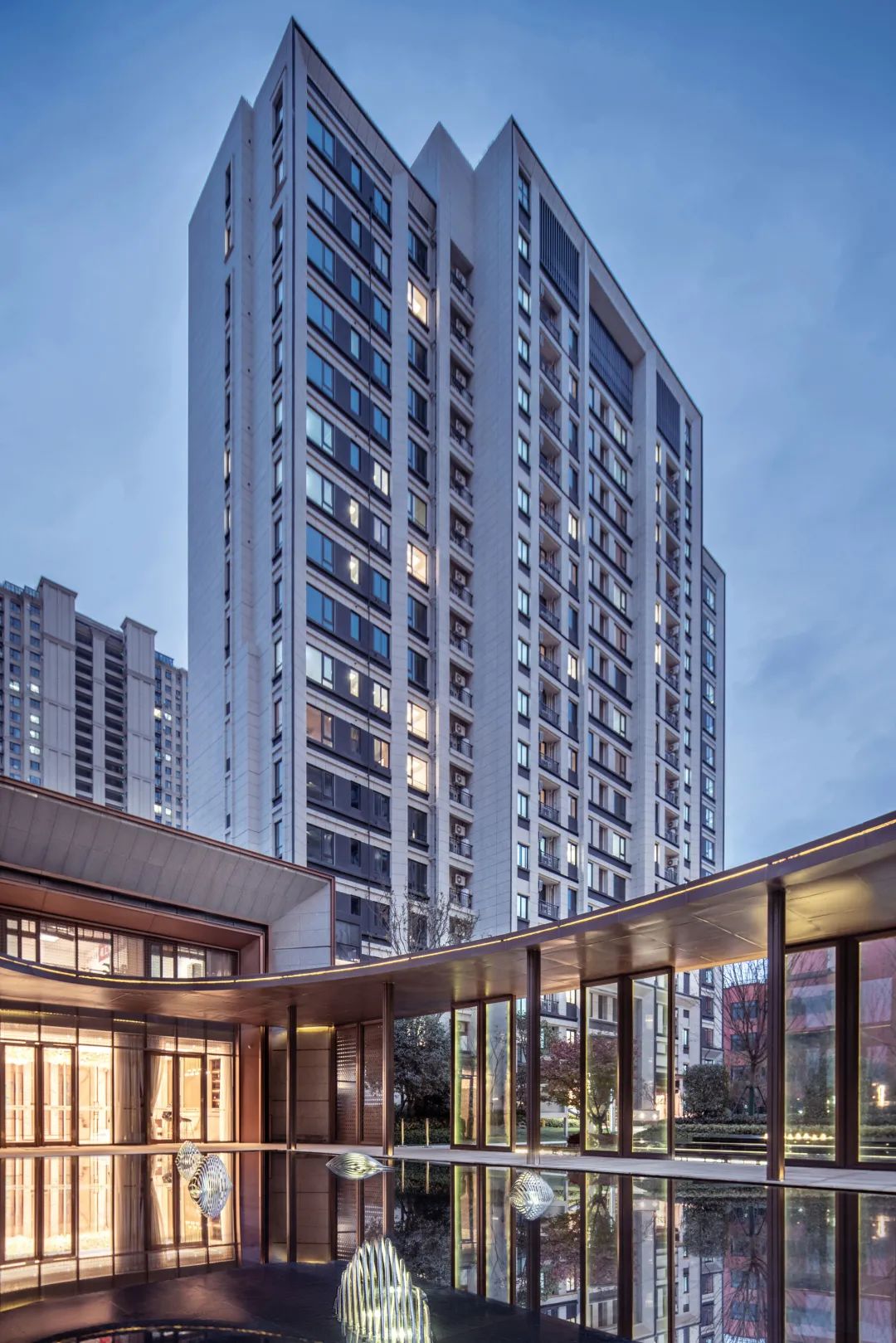 云著的酒店式大堂中空挑高約7米,放大了視覺(jué)空間尺度感,給住戶(hù)帶來(lái)每一次進(jìn)出的尊貴禮遇。